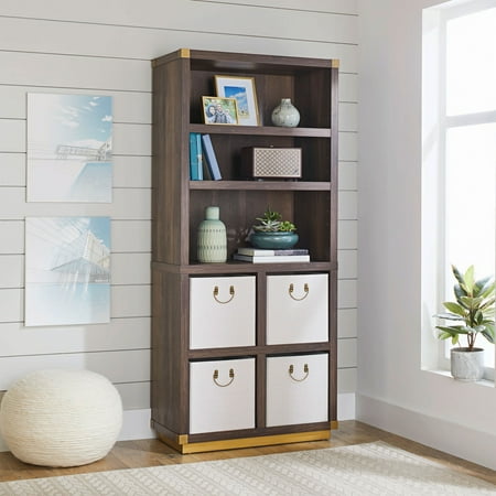 | The Better Homes & Gardens Lana Modern Vertical Organizer is ideal for organizing your decor and provides ample room for all your storage needs. The design is versatile and elegant, featuring two adjustable shelves and four fixed cube shelves. The fixed cubes create little cubby areas that are compatible with our Better Homes & Gardens 13-inch storage bins and baskets (sold separately). The Toasted Brown Ash finish of the frame is accented by the hand-painted gold finished corners and base for a unique design that creates a modern touch on a traditional wood construction. The laminate wood of the shelves are easy to clean and provide support for all of your storage and decor needs. Whether you need a bookshelf, more storage or a place to showcase your stunning decor, the Lana Modern Vertical Organizer is perfect for any space. Complete your room by coordinating the organizer with other items within the Lana Collection. | |